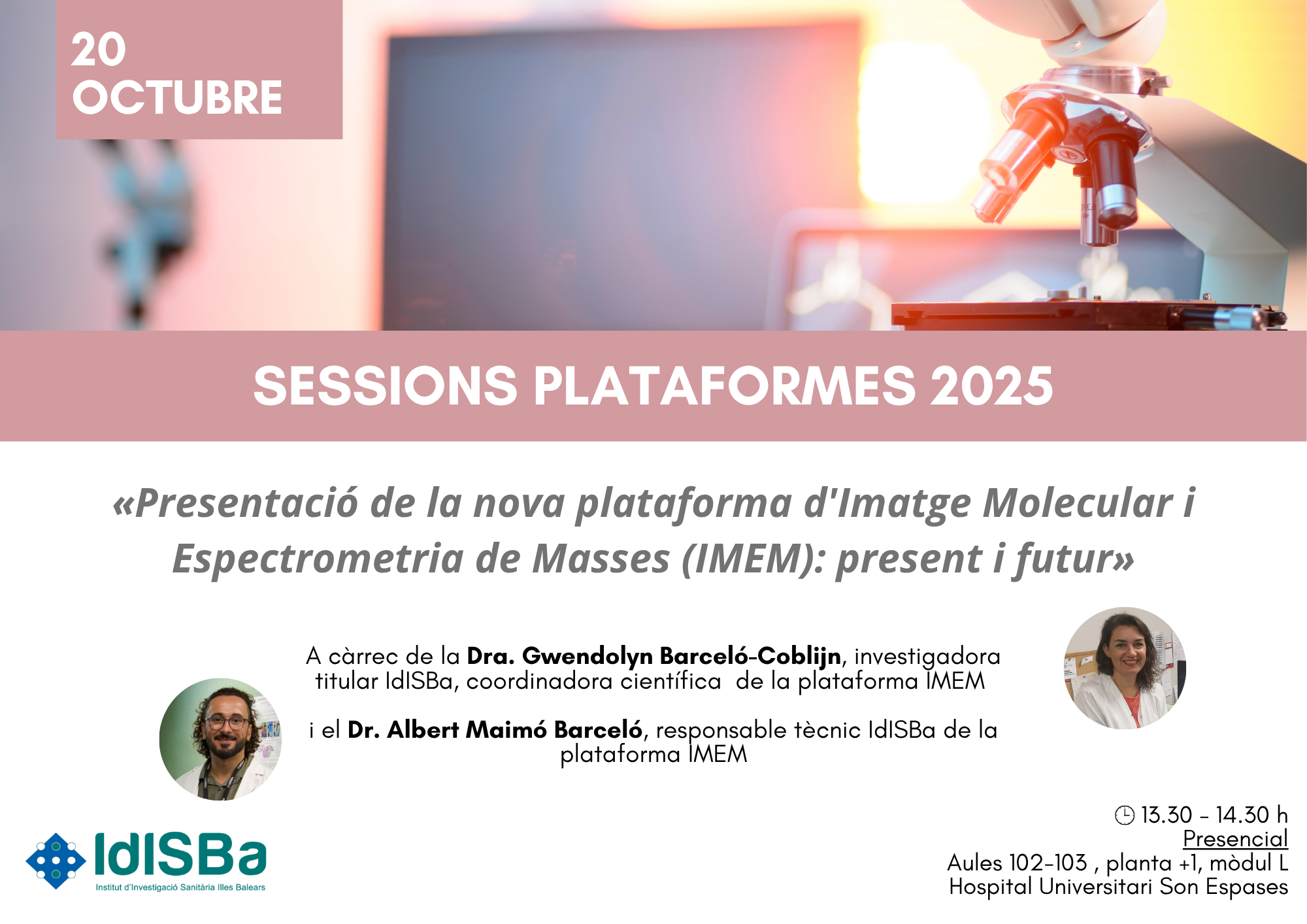 Seminario Plataformas IdISBa. Dra. Gwendolyn Barceló i Dr. Albert Maimó. «Presentació de la Nova Plataforma d'Imatge Molecular i Espectroscopia de Masses (IMEM): present i futur »